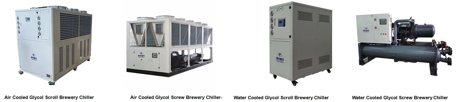 Det finns två typer av Glycol-bryggerichiller: den ena är luftkyld Glycol-bryggerichiller, den andra är vattenkyld Glycol-bryggerichiller;