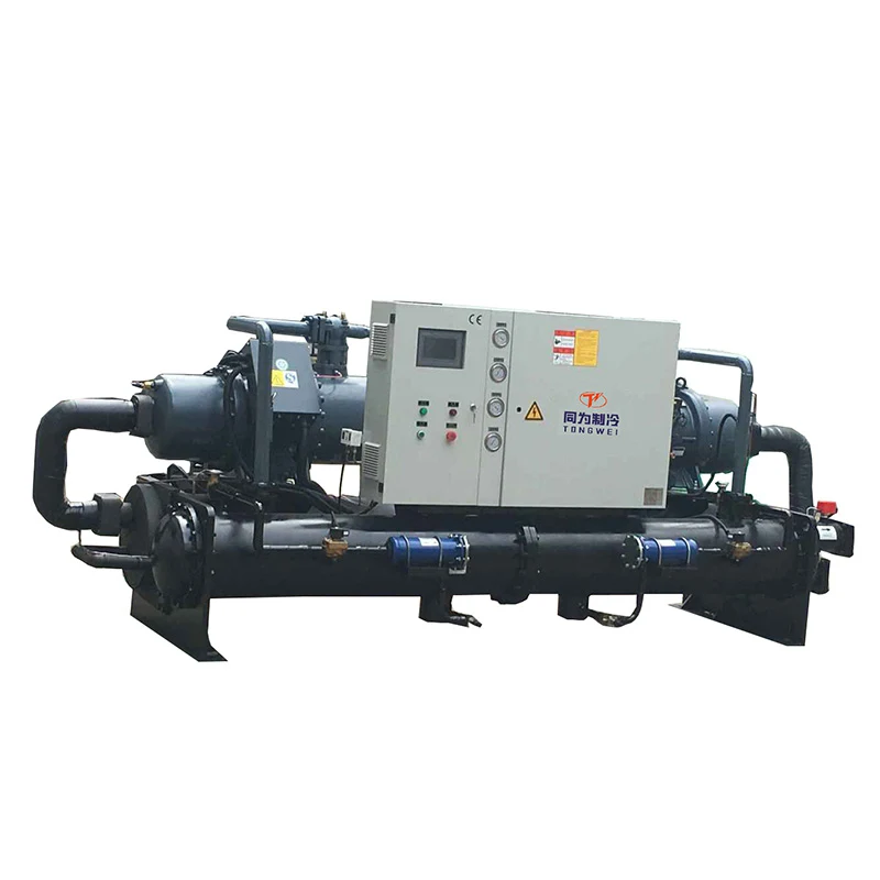 Luftkylda och vattenkylda skruvmat och drycksbehandling kylare är båda typer av kylare som används för kemisk industri.