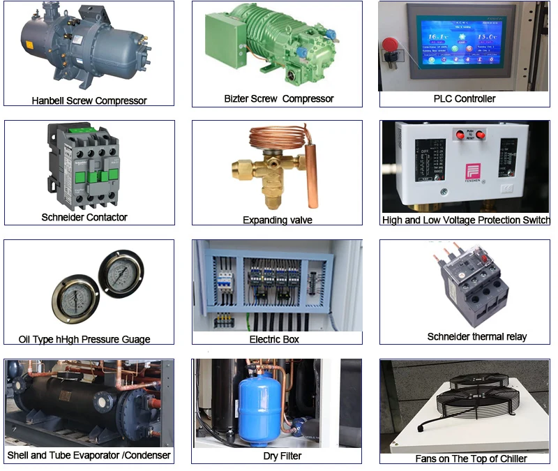 För vattenkyld skruvmat och drycksbehandling kylare, som är med ett eller två Hanbell -skruvmärke eller bizter skruvkompressor för valfritt beror på den erforderliga kylkapaciteten, med R407C kylmedium, är detta varumärkeskompress med hög kyleffektivitet, lågt brus, energibesparing, miljöskydd och risk, säkerhet och stabilitet.