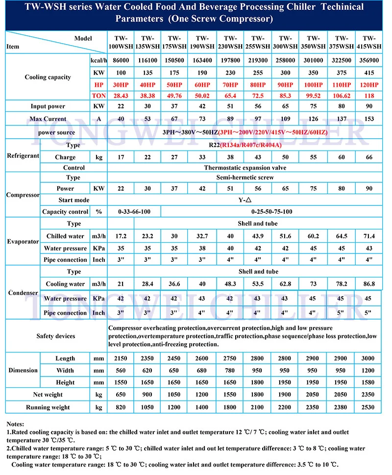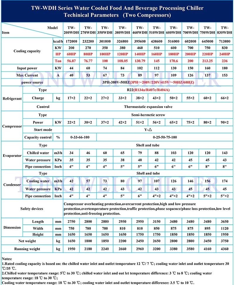 As a China leading manufacturer and supplier of process chiller over 15 years, Tongwei has exported various air cooled or water-cooled food and beverage chillers cooling capacity from 10 Ton,20 Ton,40Ton,50Ton,80Ton 120 Ton and 200Ton to the USA, Canada, Philippines, Australia, Malaysia, Singapore, Indonesia, Chile, Mexico, ,Argentina, Colombia, South Africa, Kuwait, Egypt, Saudiarabien etc. Vi tillhandahåller inte bara högkvalitativa kylmaskiner, utan vi prioriterar utmärkt kundservice. En stor fördel med vår Tongwei är att våra kunder är vår högsta prioritet, som skiljer oss från våra konkurrenter. Vårt kunniga team ägnar sig åt att tillhandahålla utmärkt kundservice och din tillfredsställelse. Några av de viktigaste fördelarna som vårt team ger för din kylare inkluderar: noggrant packa upp, rengör och testa varje kylsystem innan frakt; Genomföra rutinmässiga kvalitetssäkringskontroller på varje enhet; Endast skicka helt nya maskiner och system till våra kunder; felsöka och lösa problem så snabbt och effektivt som möjligt. Kontakta oss idag för att få alla dessa stora fördelar med din vattenkylda mat och dryck kylare. En medlem av vårt team kommer gärna att ta itu med alla frågor du kan ha och diskutera fullständiga tekniska specifikationer.